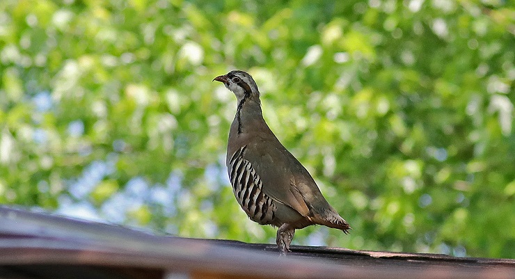 The Chukar on the roof stayed up there for about an hour, displaying no fear of humans. high-res